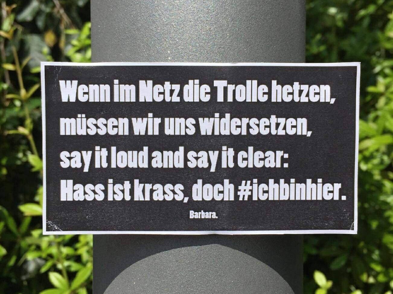 ”Wenn im Netz die Trolle hetzen, müssen wir uns widersetzen, say it loud and say it clear: Hass ist krass, doch #ichbinhier.“